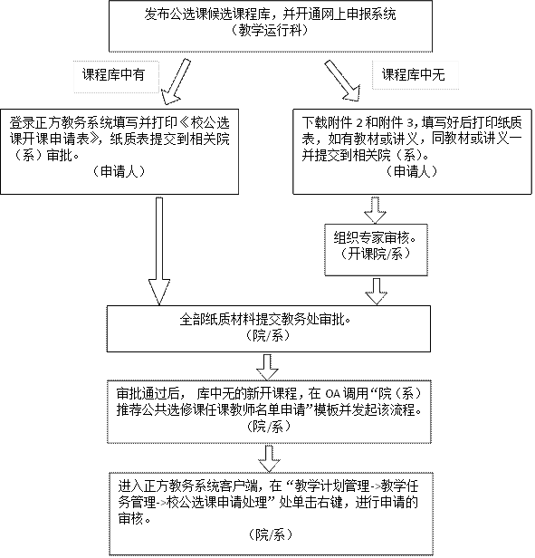 (1)鼓励优先选择课程库里的在线开放课程(网课)申请对应的线下教学课程进行开课教学,即混合式教学。申请流程按“课程库中无”办理。